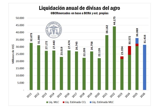 De esta manera, en lo que va de 2025, el sector aportó un estimado de US$ 30.600 millones en el Mercado Libre de Cambios (MLC), a los que se le suman otros US$ 1.550 millones de liquidación vía dólares financieros mientras estuvo vigente el llamado “dólar blend”.
