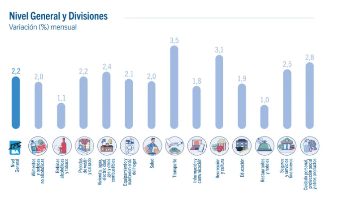 La categoría denominada «Resto IPCBA», que funciona como una aproximación a la inflación núcleo, mostró un aumento del 2,2%.